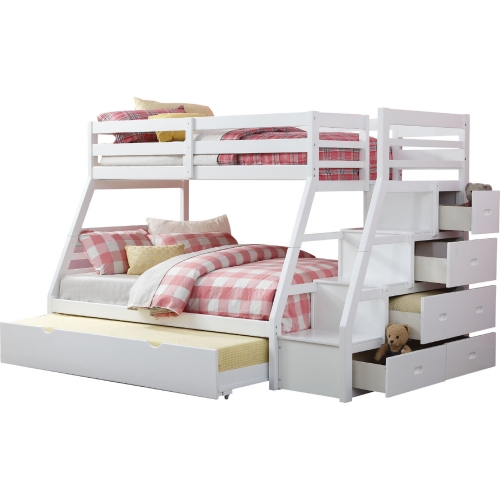 Acme Furniture Jason Twin over Full Bunk Bed with Storage Ladder & Trundle in White