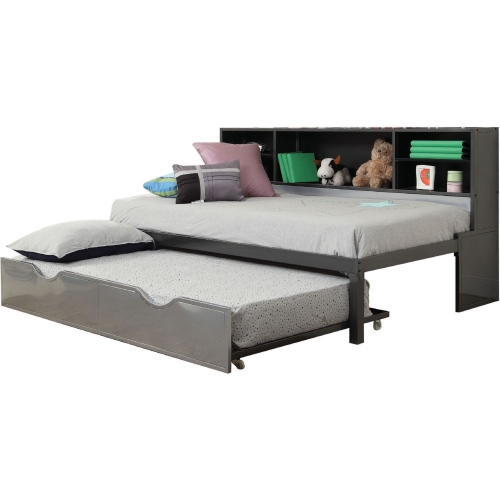 Acme Furniture 37225T Renell Twin Bed w/ Bookcase & Trundle Black & Silver