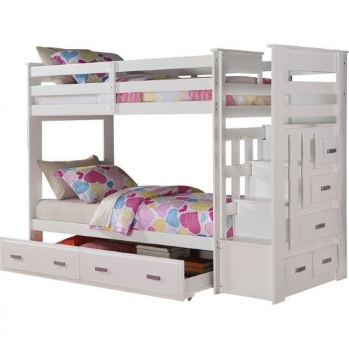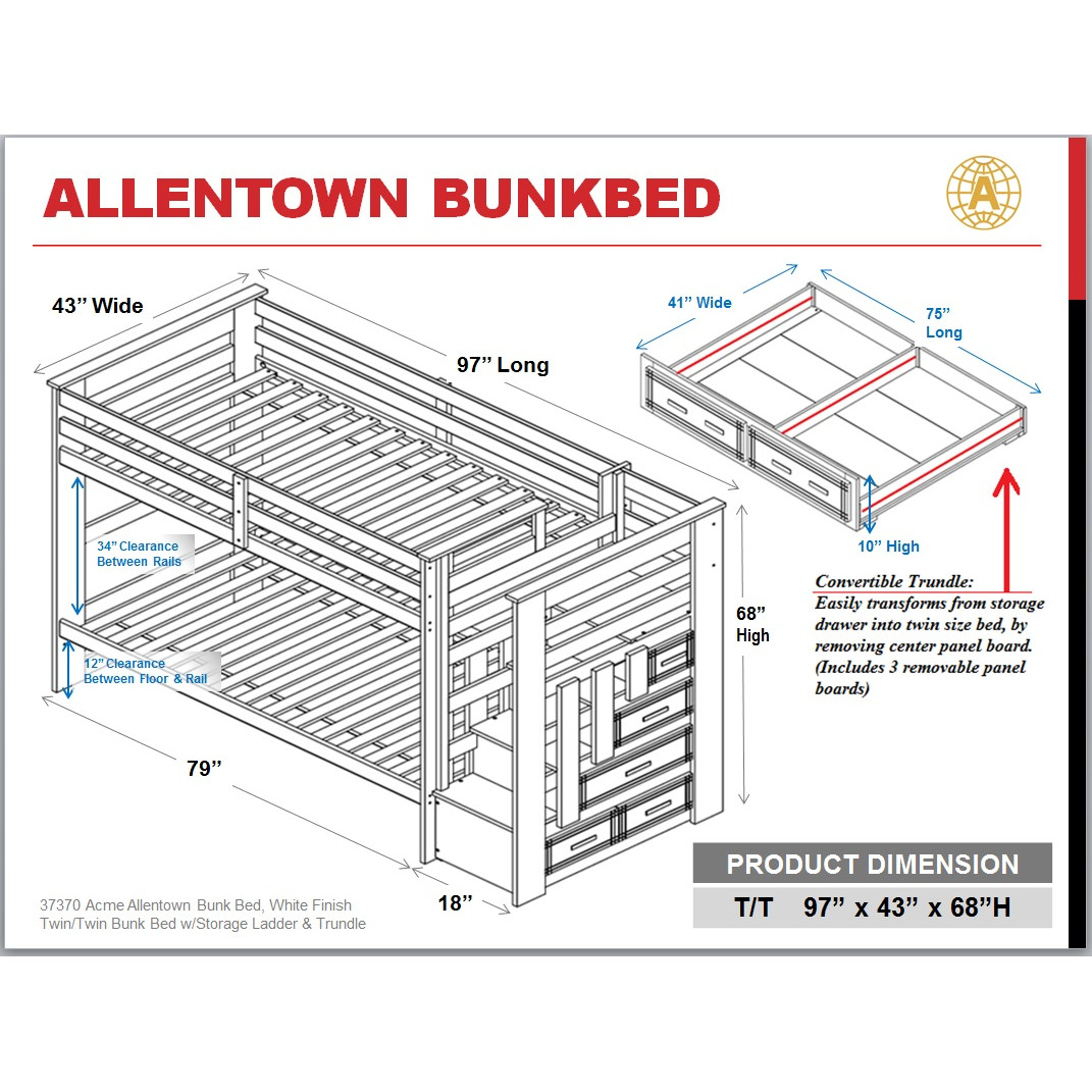 Acme Furniture 37370 Allentown Twin Bunk Bed w/ Storage Ladder & Trundle White