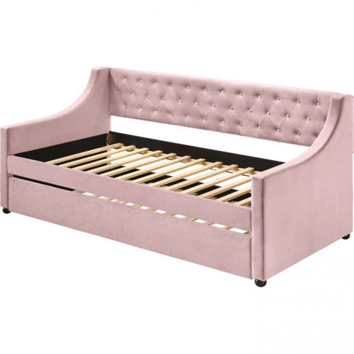 Acme Furniture 39380 Lianna Twin Daybed & Trundle Tufted Pink Velvet