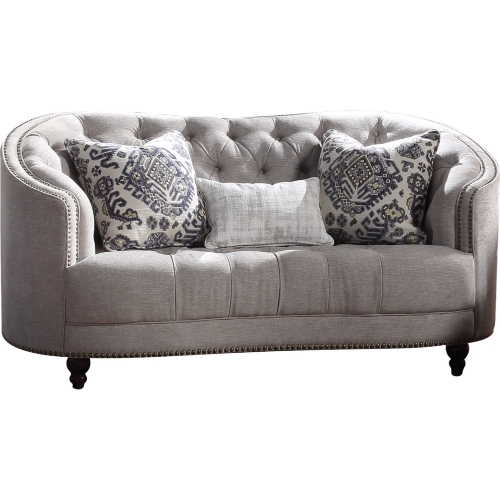 Acme Furniture 52061 Saira Curved Loveseat Light Gray Fabric w/ Nailhead