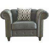 Acme Furniture Aurelia Chair with 1 Pillow in Tufted Beige Linen