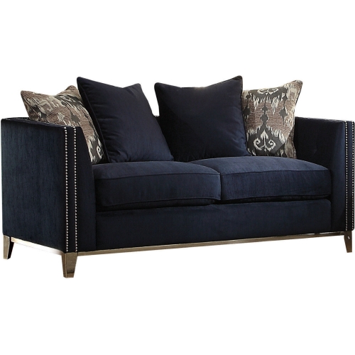 Acme Furniture Phaedra Loveseat with in Blue Fabric with Nailhead on Stainless Legs