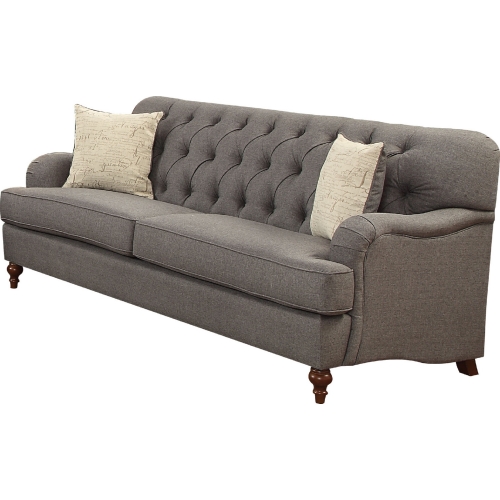 Acme Furniture Alianza Sofa with 2 Pillows in Tufted Dark Gray Fabric