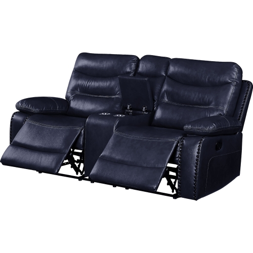 Acme Furniture Aashi Reclining Loveseat with Console in Navy Leather-Gel Match