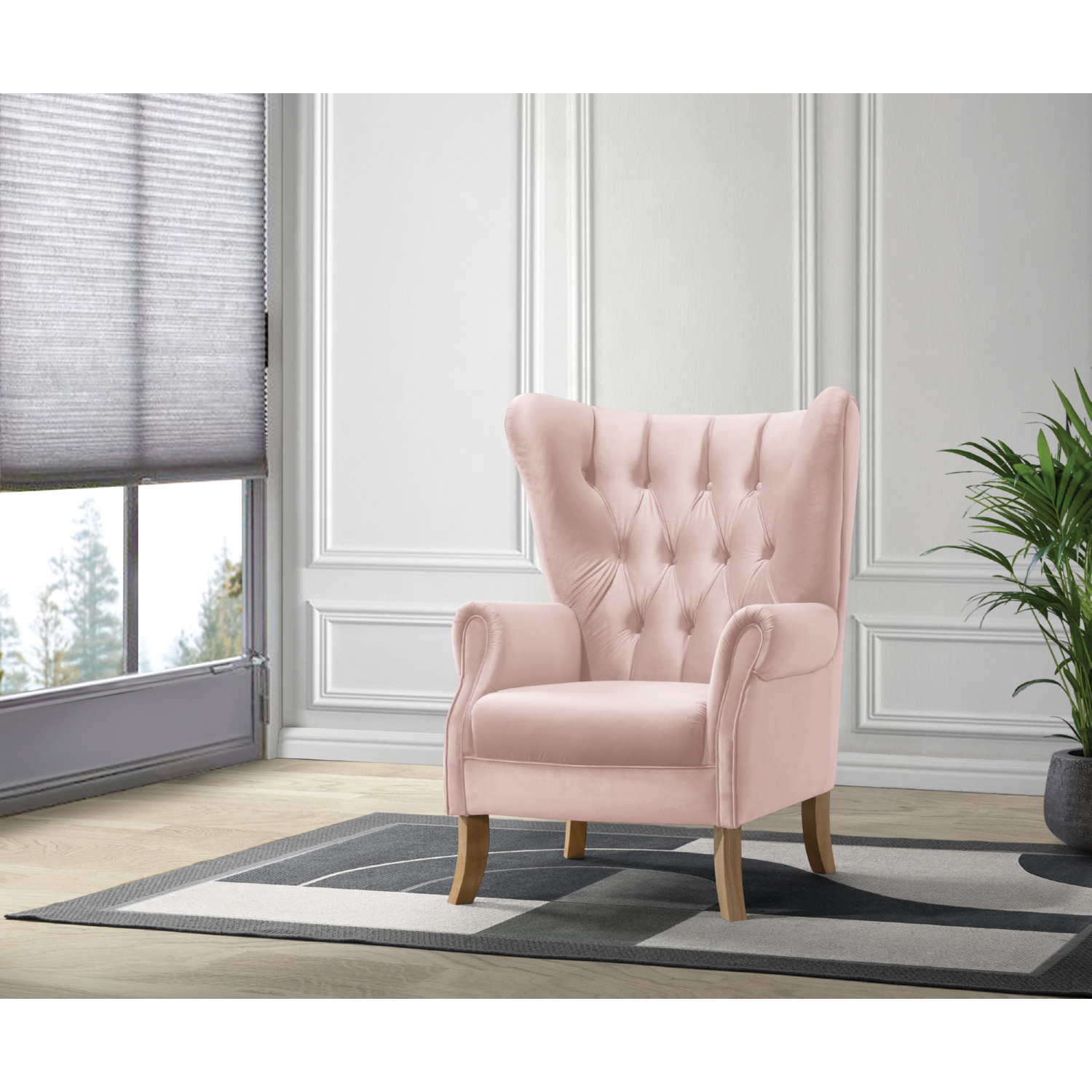 Acme Furniture Adonis Wingback Accent Chair in Tufted Blush Pink Velvet