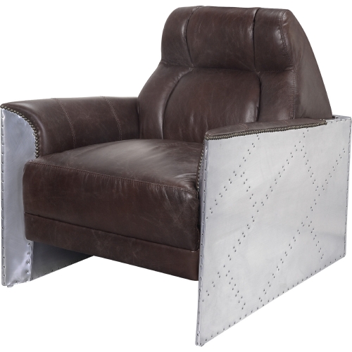 Acme Furniture Brancaster Accent Chair in Espresso Top Grain Leather & Aluminum