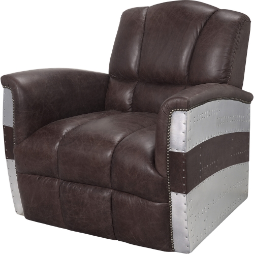 Acme Furniture Brancaster Accent Chair in Retro Brown Top Grain Leather & Aluminum