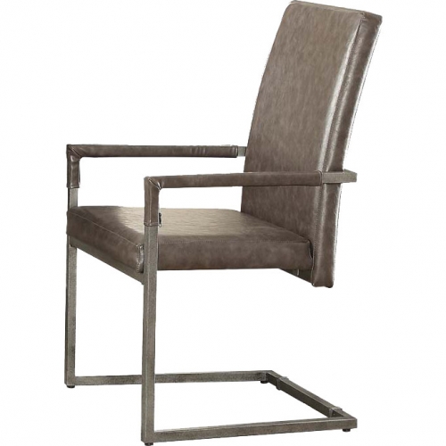Acme Furniture Lazarus Arm Chair in Gray Leatherette & Antique Silver (Set of 2)