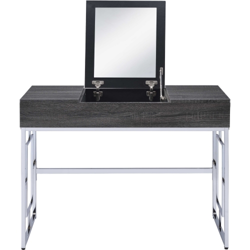 Acme Furniture Saffron Vanity Desk in Black Oak & Chrome