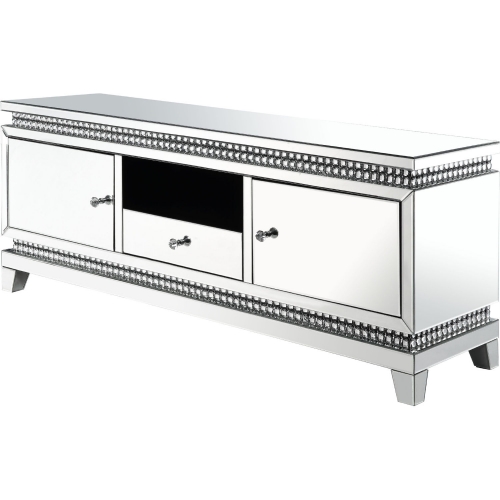 Acme Furniture Lotus TV Stand in Mirror & Faux Crystals