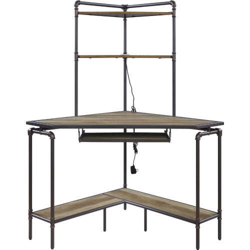 Acme Furniture Deliz Corner Desk & Hutch in Sand Gray Finish Metal & Wood