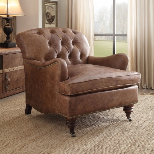 Acme Furniture Durham Accent Chair in Retro Brown Top Grain Leather