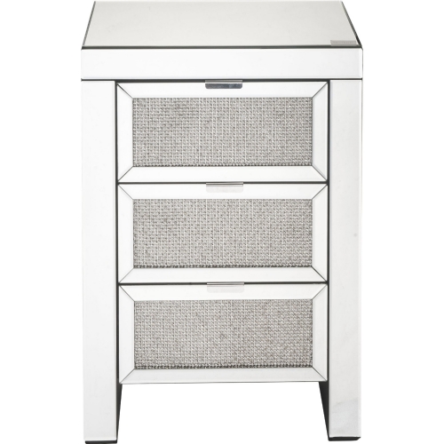 • Front Drawers with Faux Diamonds Inlay & Clear Tempered Glass