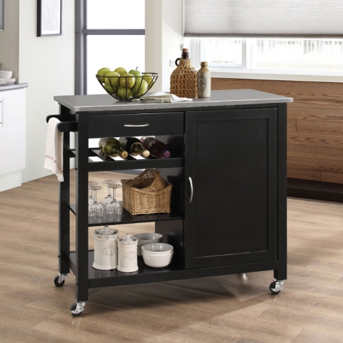 Acme Furniture 98317 Ottawa Kitchen Cart Stainless Steel & Black