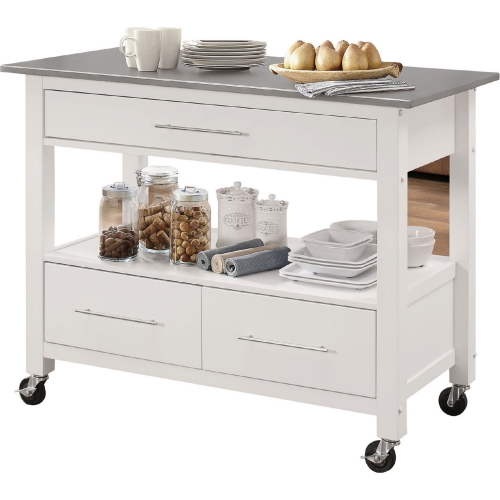 Acme Furniture Ottawa Kitchen Cart in Stainless Steel & White