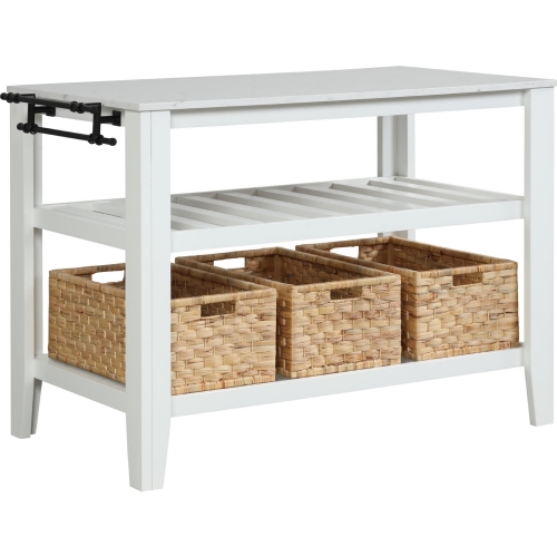 Acme Furniture AC00395 Sezye Kitchen Island Faux Marble White Finish Baskets