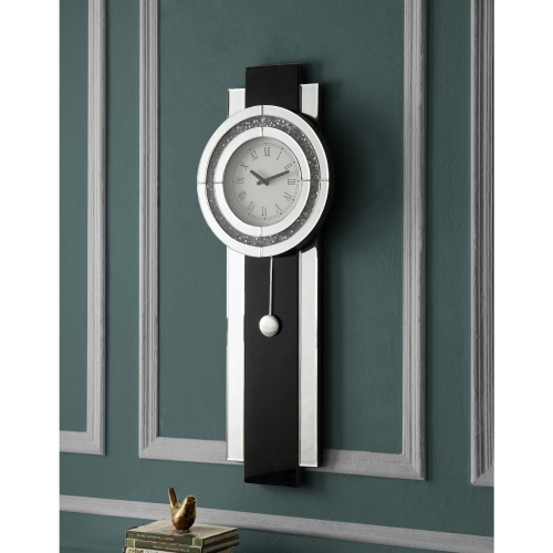 Acme Furniture Noralie Wall Clock in Black, Mirror & Faux Diamonds