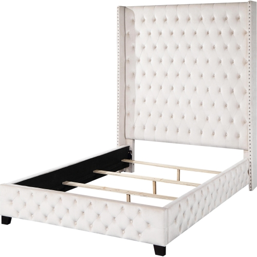 Acme Furniture BD00965Q Fabrice Queen Bed Tufted Beige Velvet Tall Headboard