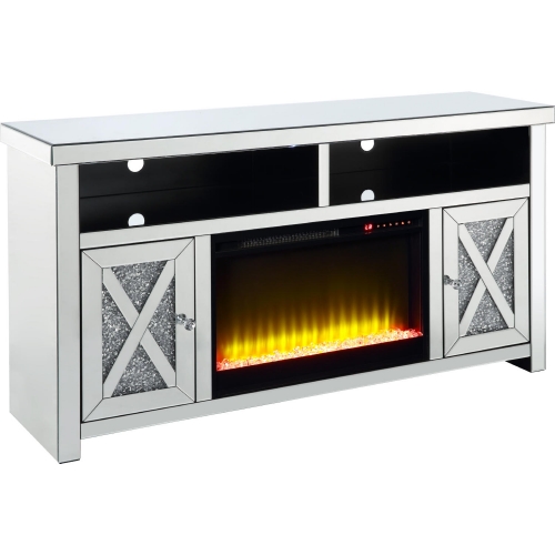 Acme Furniture LV00318 Noralie 59" Fireplace TV Stand Mirror Faux Diamonds