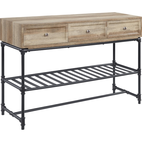 Acme Furniture LV00750 Brantley Sofa Table Oak Finish Sandy Black Metal