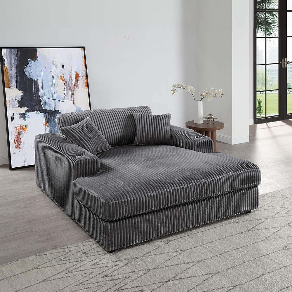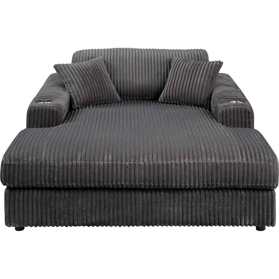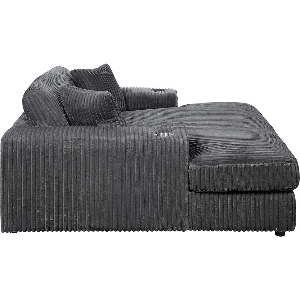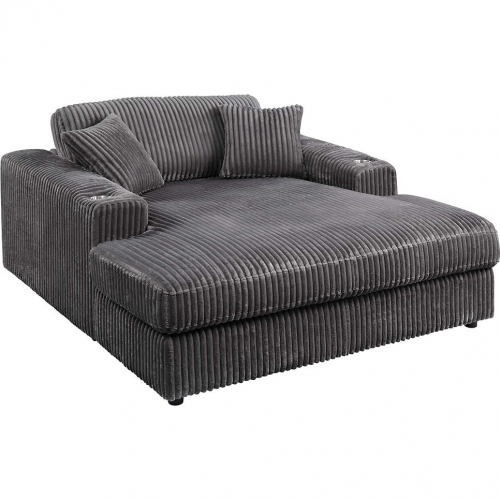 Acme Furniture LV03691 Hilde Chaise 2 Cup Holders Oversized Corduroy Gray Velvet