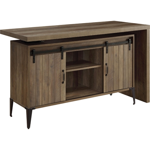 Acme Furniture Zakwani Swivel Desk & Cabinet in Rustic Oak & Black Metal