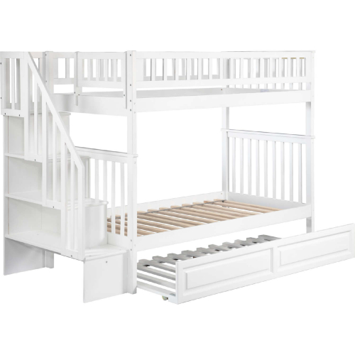 AFI Furnishings Woodland Staircase Twin over Twin Bunk Bed with Raised Panel Trundle in White