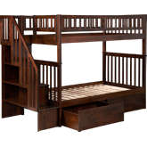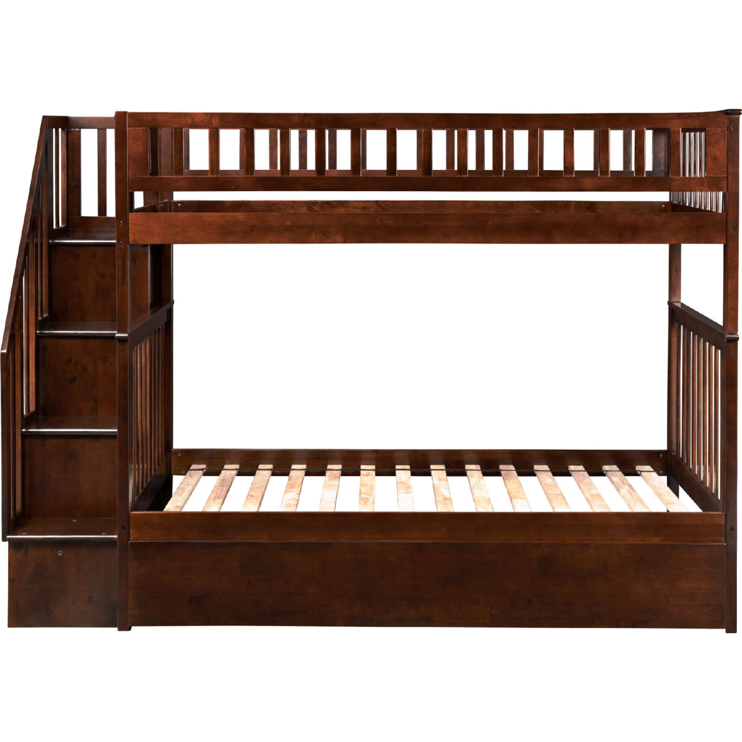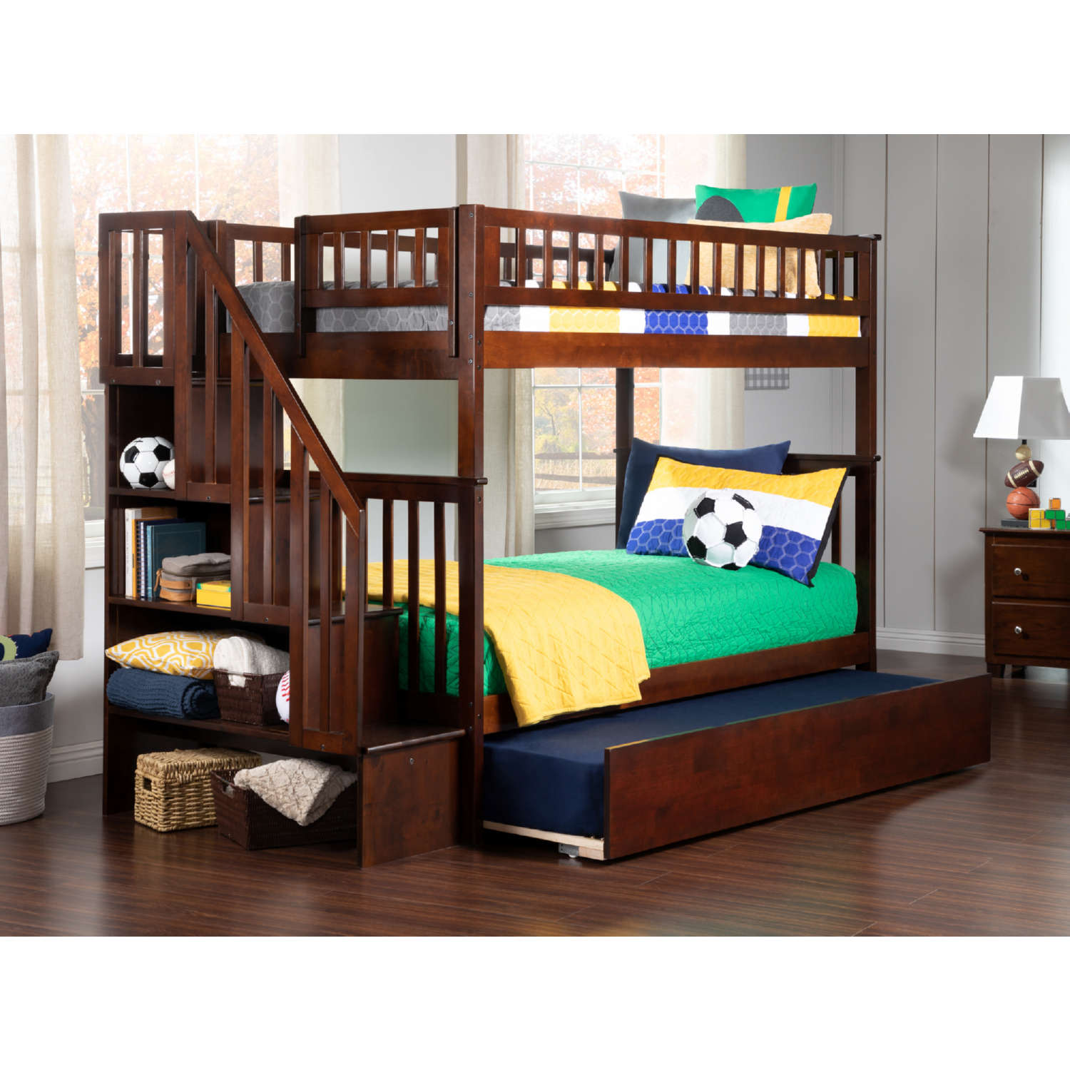 AFI Furnishings Woodland Staircase Twin over Twin Bunk Bed with Urban Lifestyle Trundle in Antique Walnut