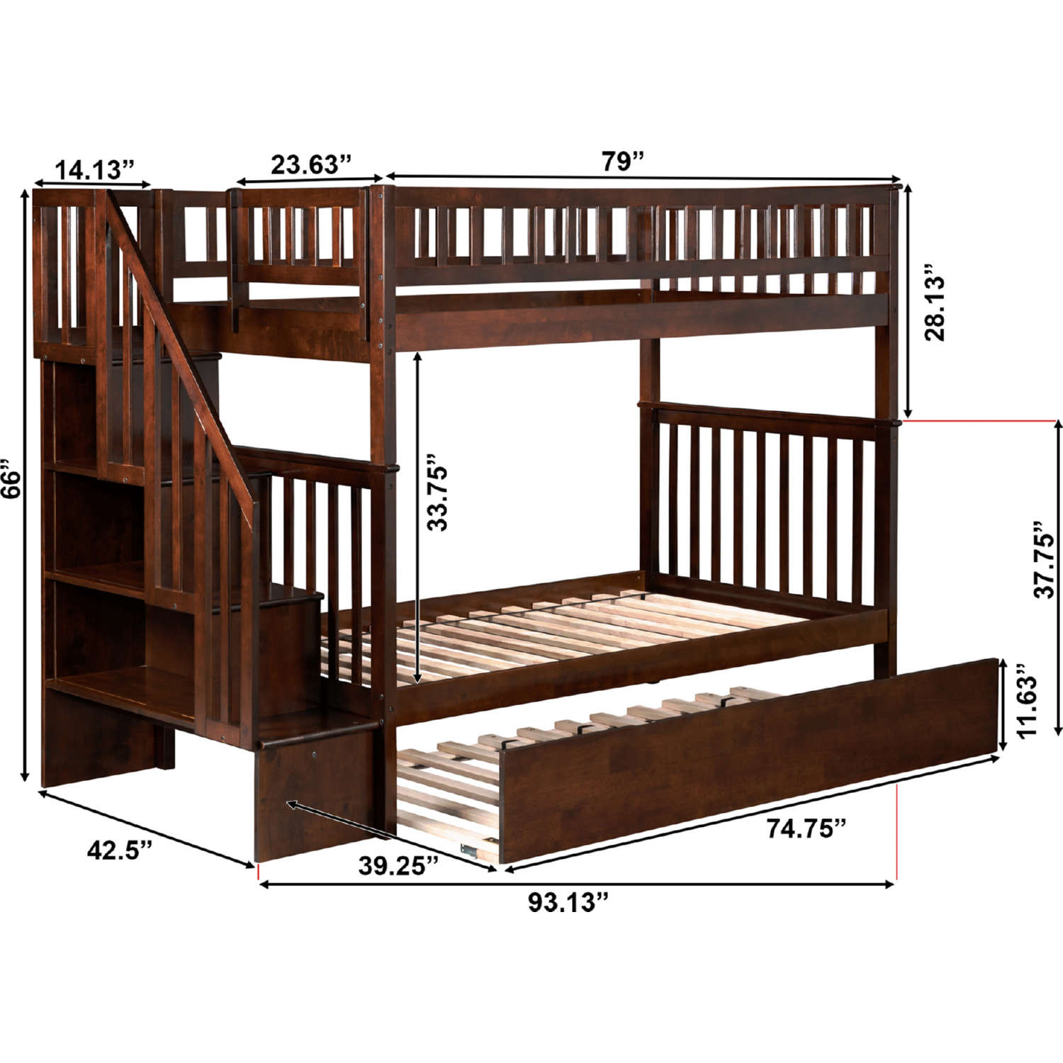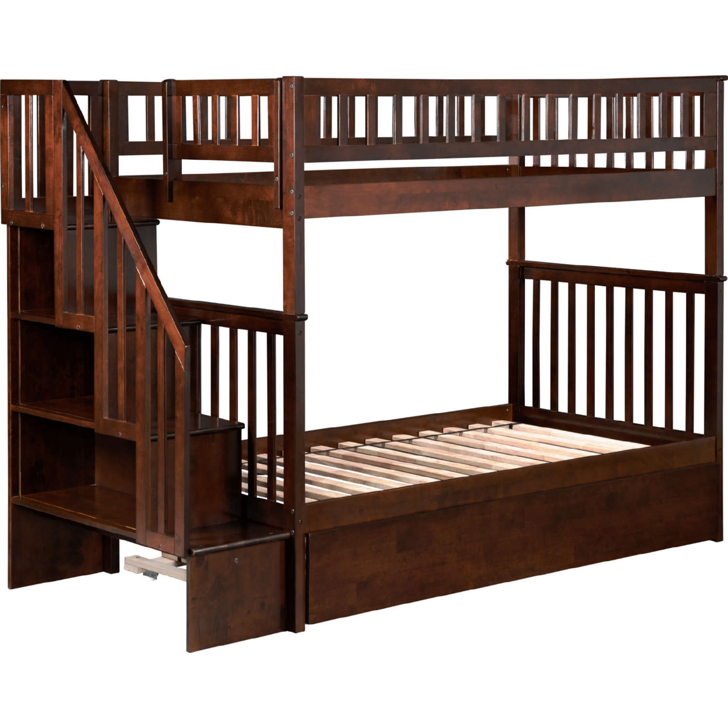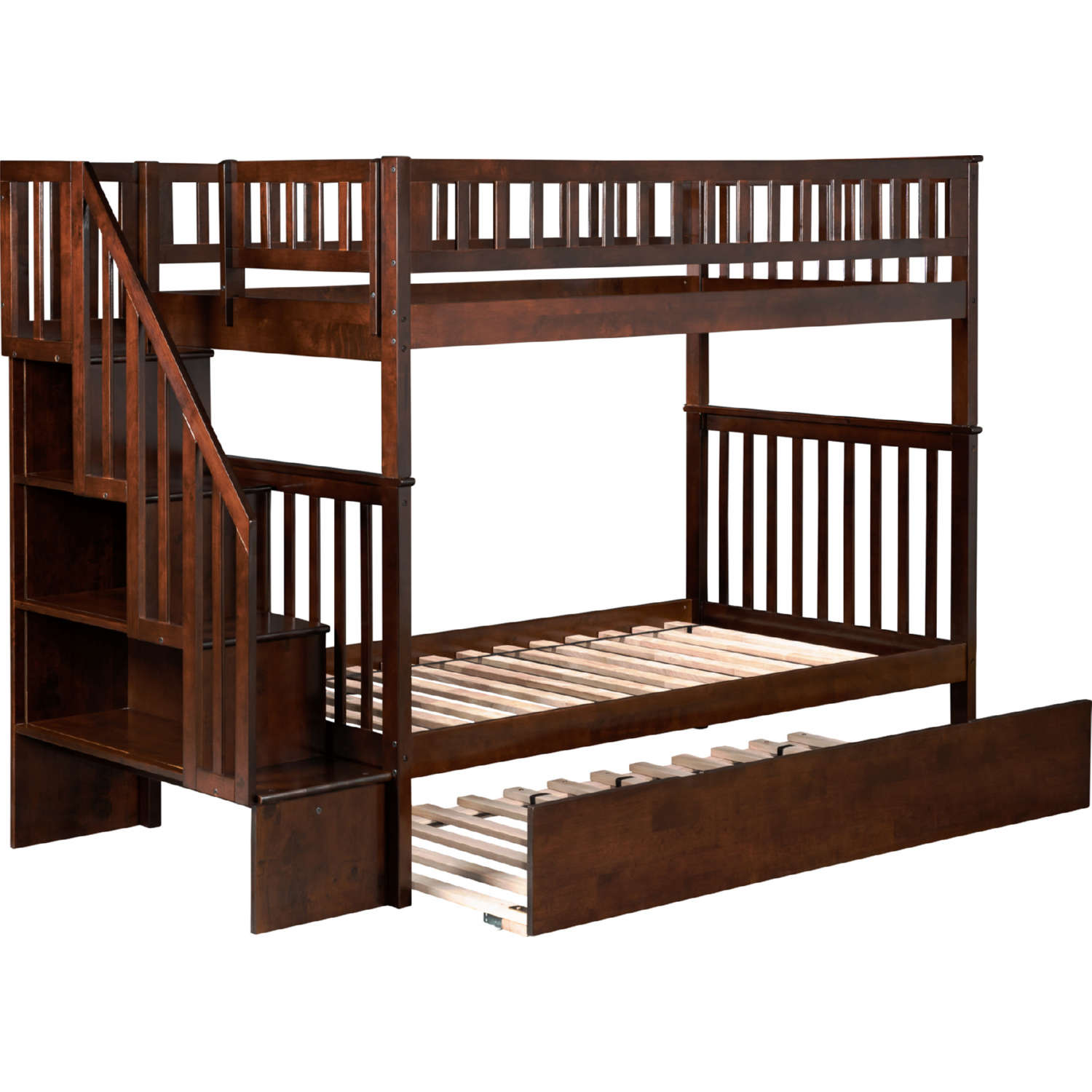 AFI Furnishings AB56654 Woodland Staircase Bunk Bed Twin Over Twin with Urban Lifestyle Trundle Antique Walnut