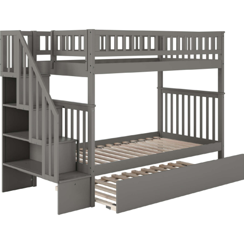 AFI Furnishings AB56659 Woodland Staircase Twin Over Twin Bunk Bed & Urban Trundle Bed Grey