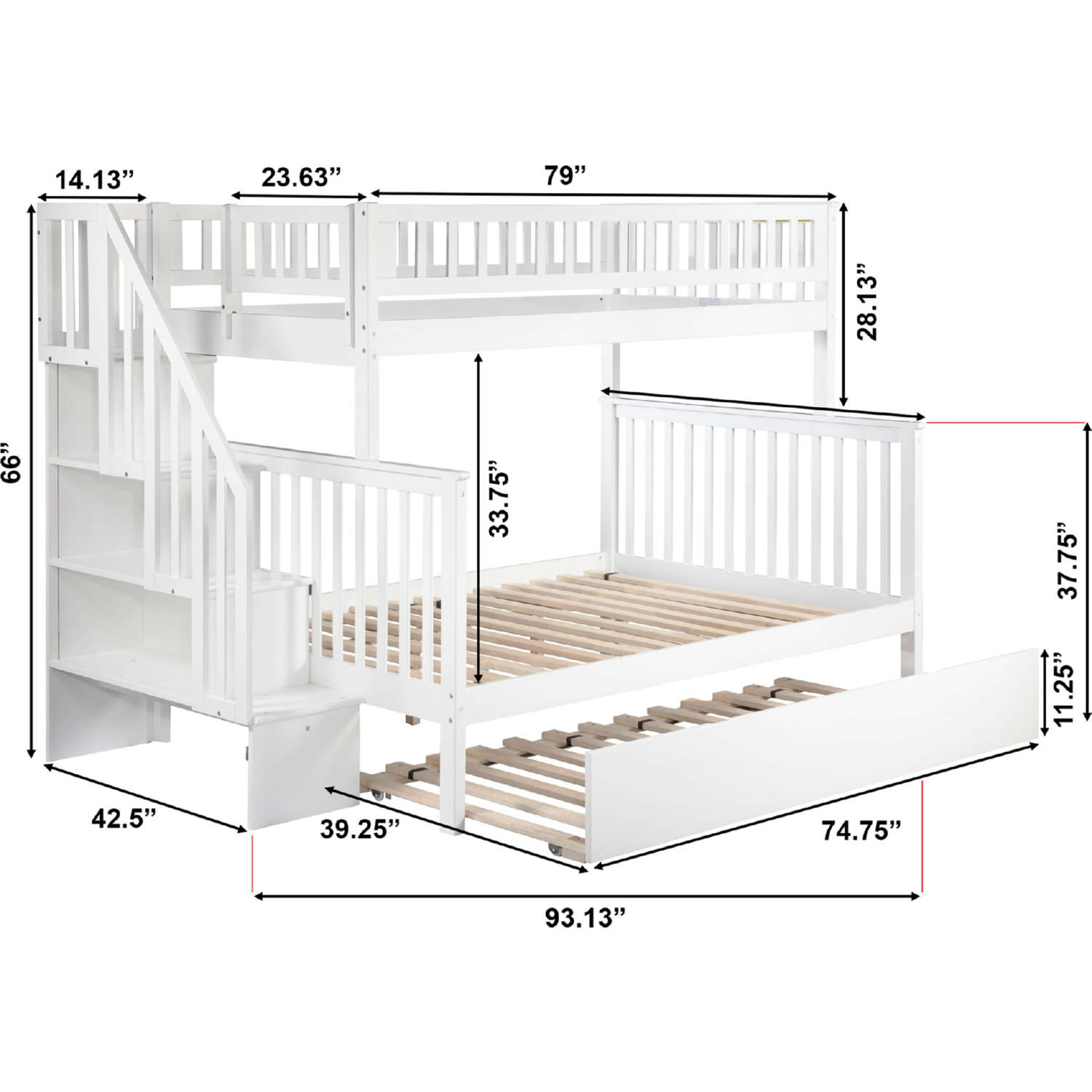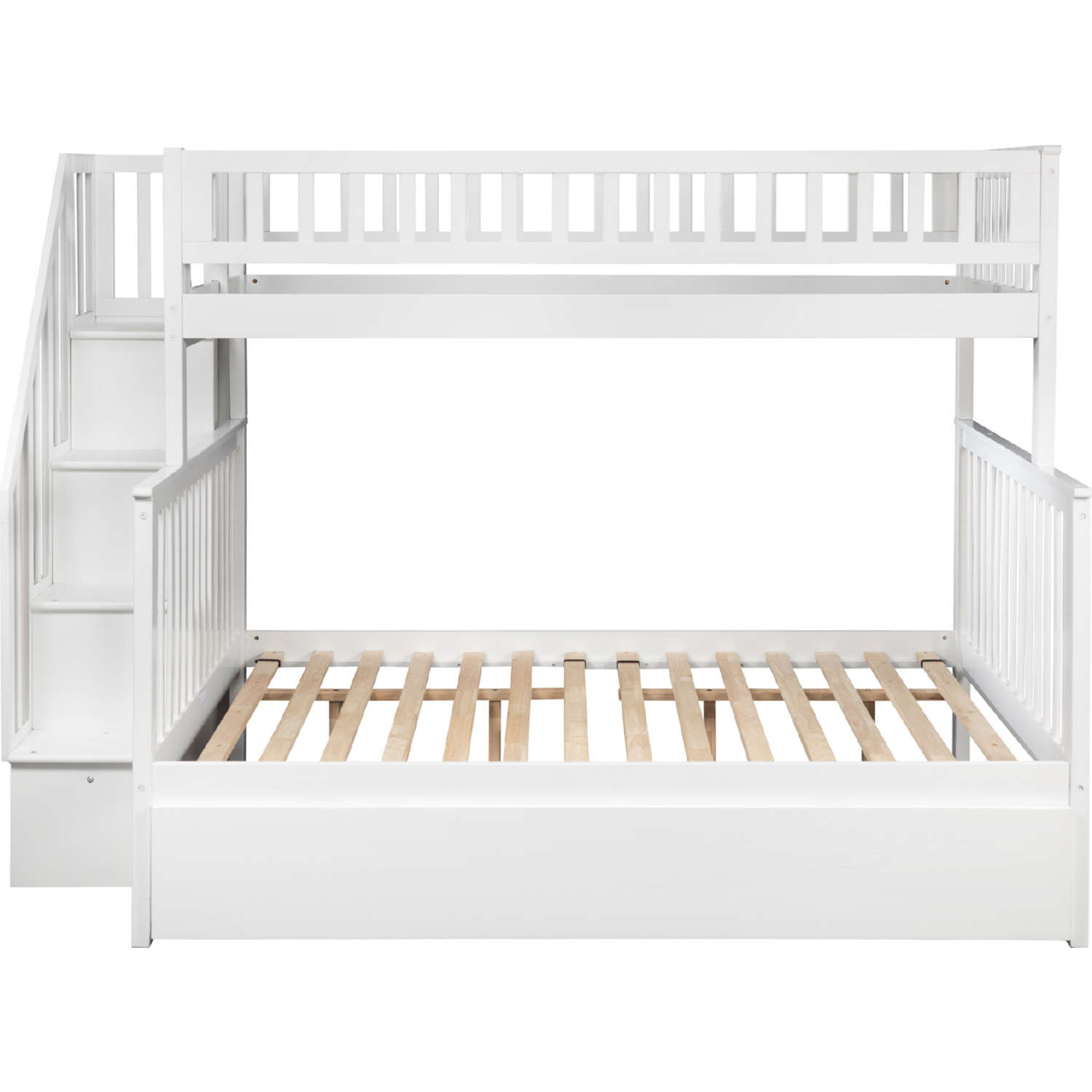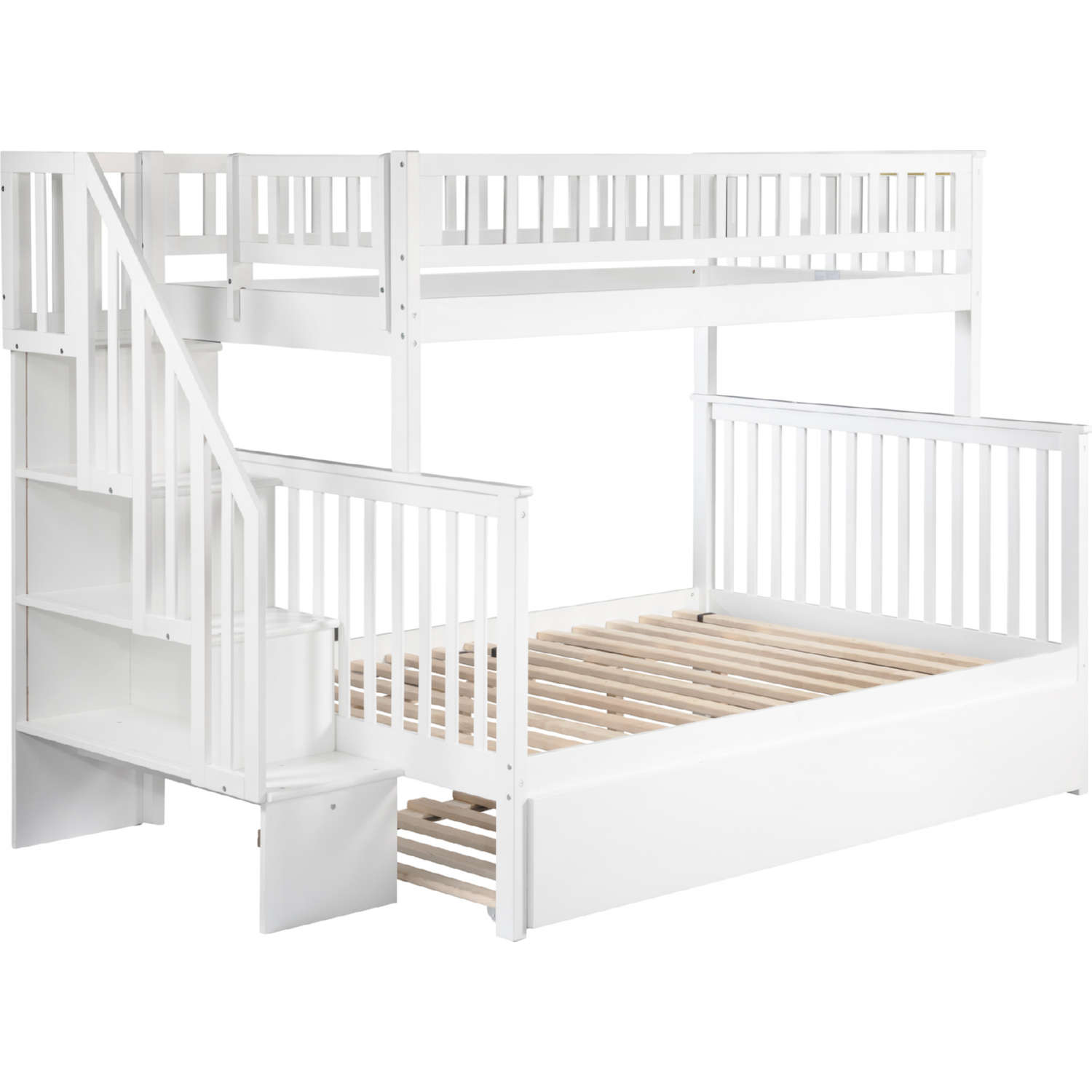 AFI Furnishings Woodland Staircase Twin over Full Bunk Bed with Twin Urban Lifestyle Trundle in White