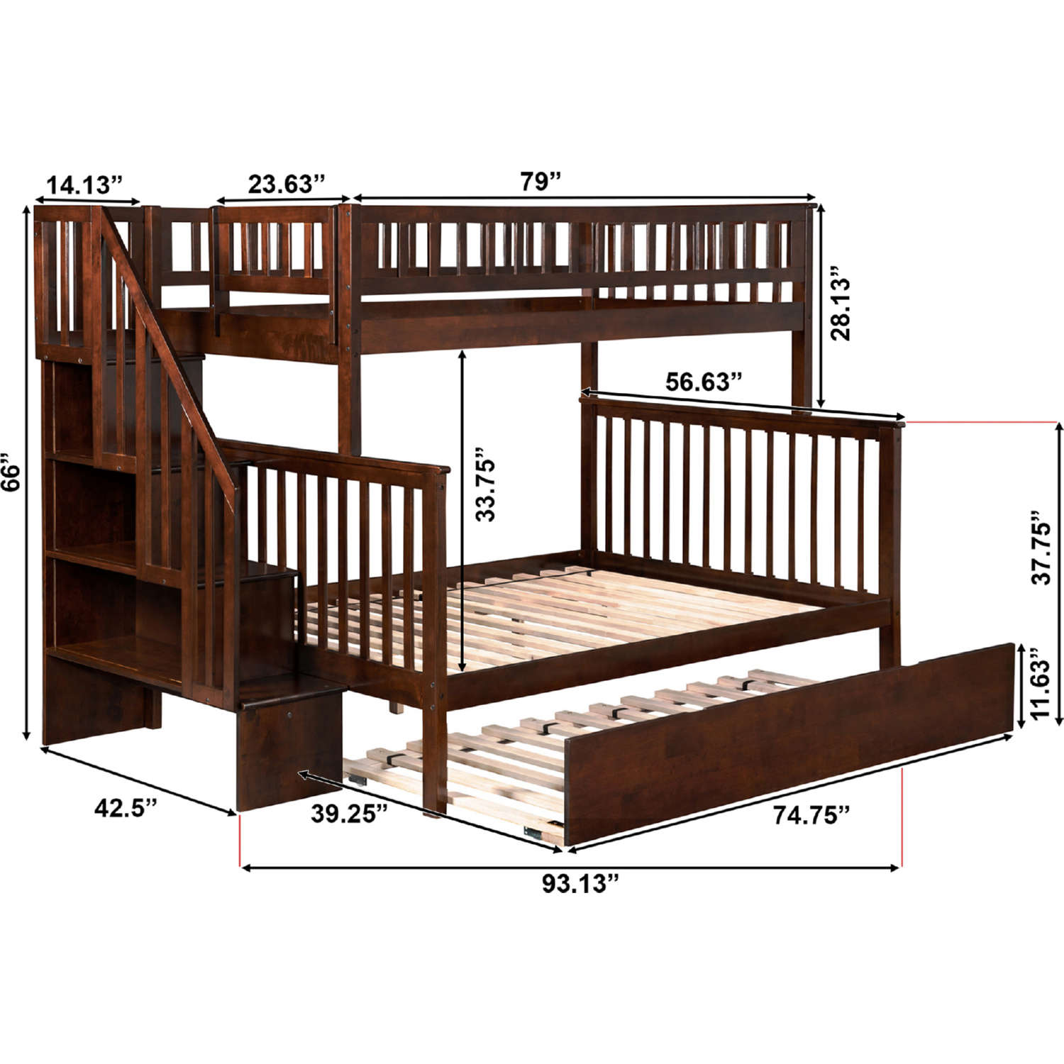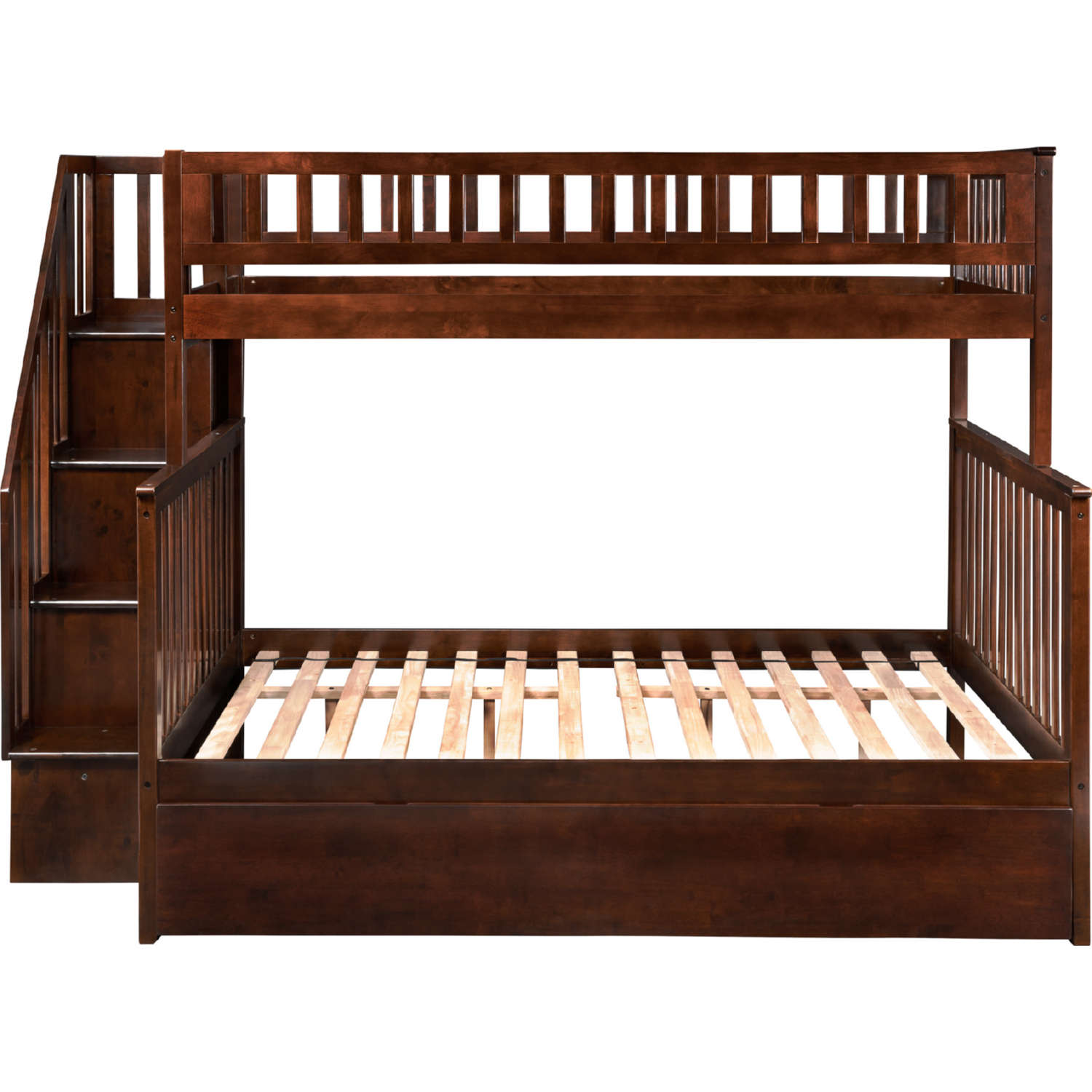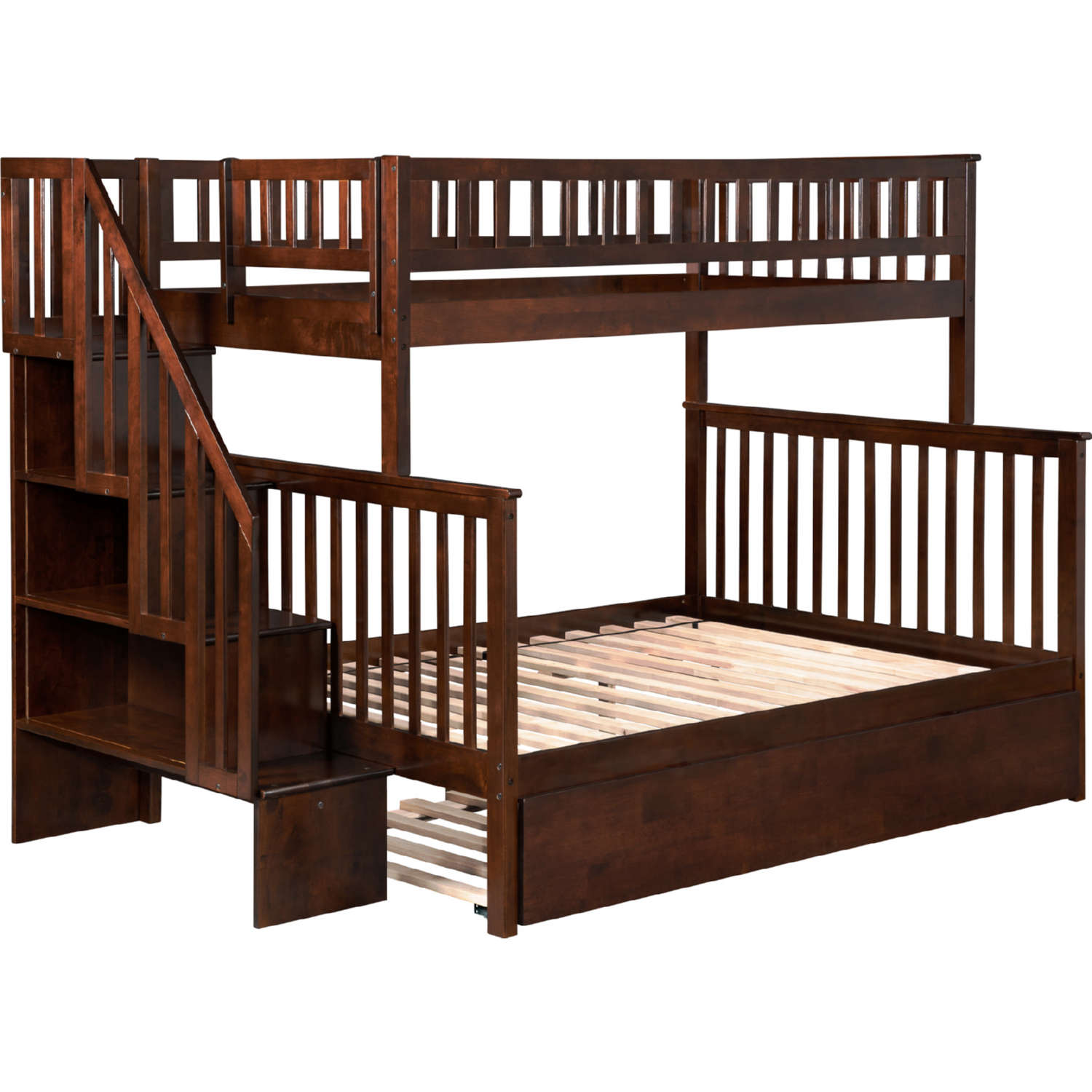 AFI Furnishings AB56754 Woodland Staircase Bunk Bed Twin Over Full with Twin Urban Lifestyle Trundle Antique Walnut