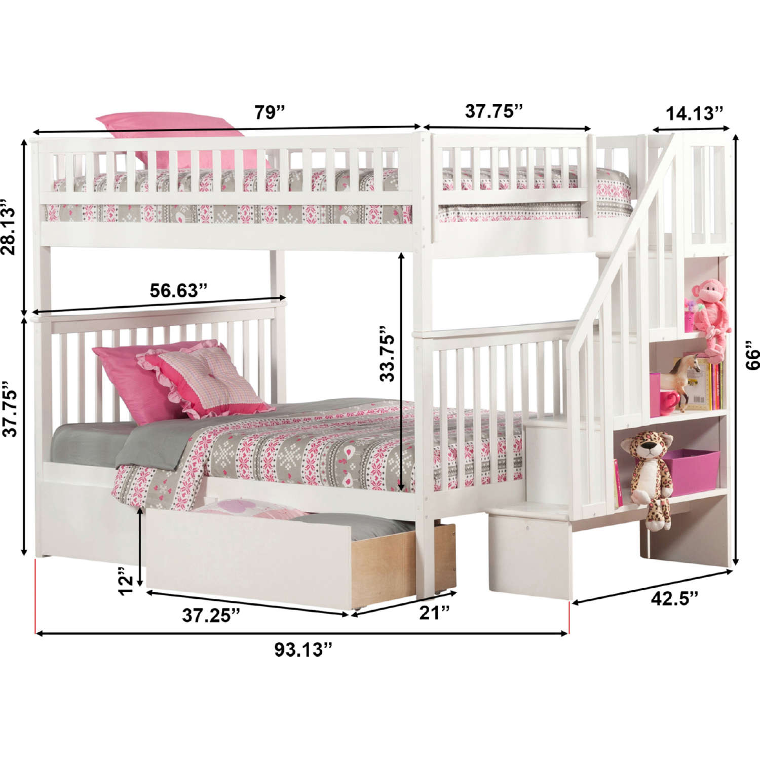 AFI Furnishings AB56842 Woodland Staircase Bunk Bed Full Over Full with 2 Urban Lifestyle Bed Drawers White