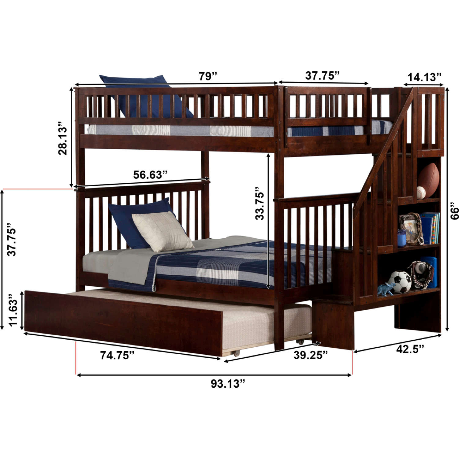 AFI Furnishings Woodland Staircase Full over Full Bunk Bed with Twin Urban Lifestyle Trundle in Antique Walnut