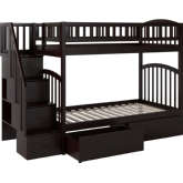 AFI Furnishings Westbrook Staircase Twin over Twin Bunk Bed with 2 Urban Bed Drawers in White