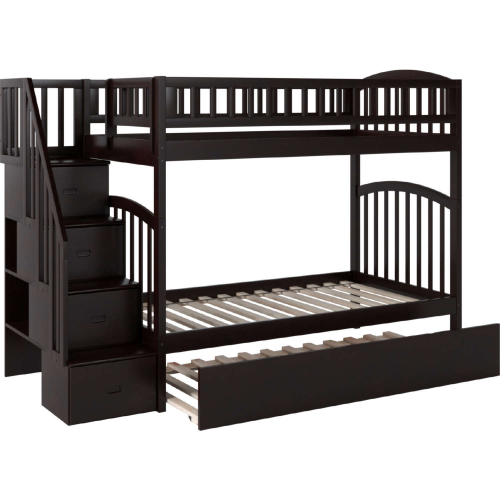 AFI Furnishings Westbrook Staircase Twin over Twin Bunk Bed with Urban Trundle Bed in Espresso