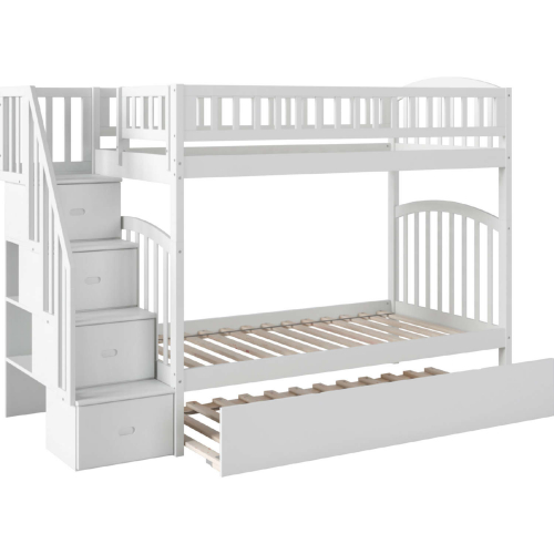 AFI Furnishings AB65652 Westbrook Staircase Bunk Bed Twin Over Twin with Urban Trundle Bed White