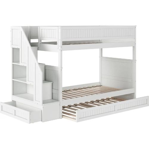 AFI Furnishings Dover Twin over Twin Staircase Bunk Bed w/ Storage Drawer & Twin Trundle in White