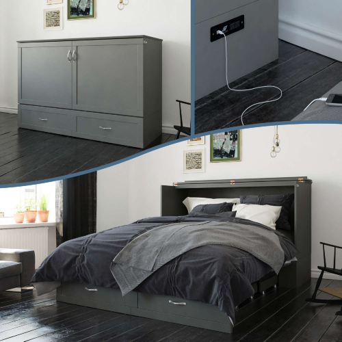 AFI Furnishings Hamilton Queen Murphy Bed Chest in Grey with Charging Station