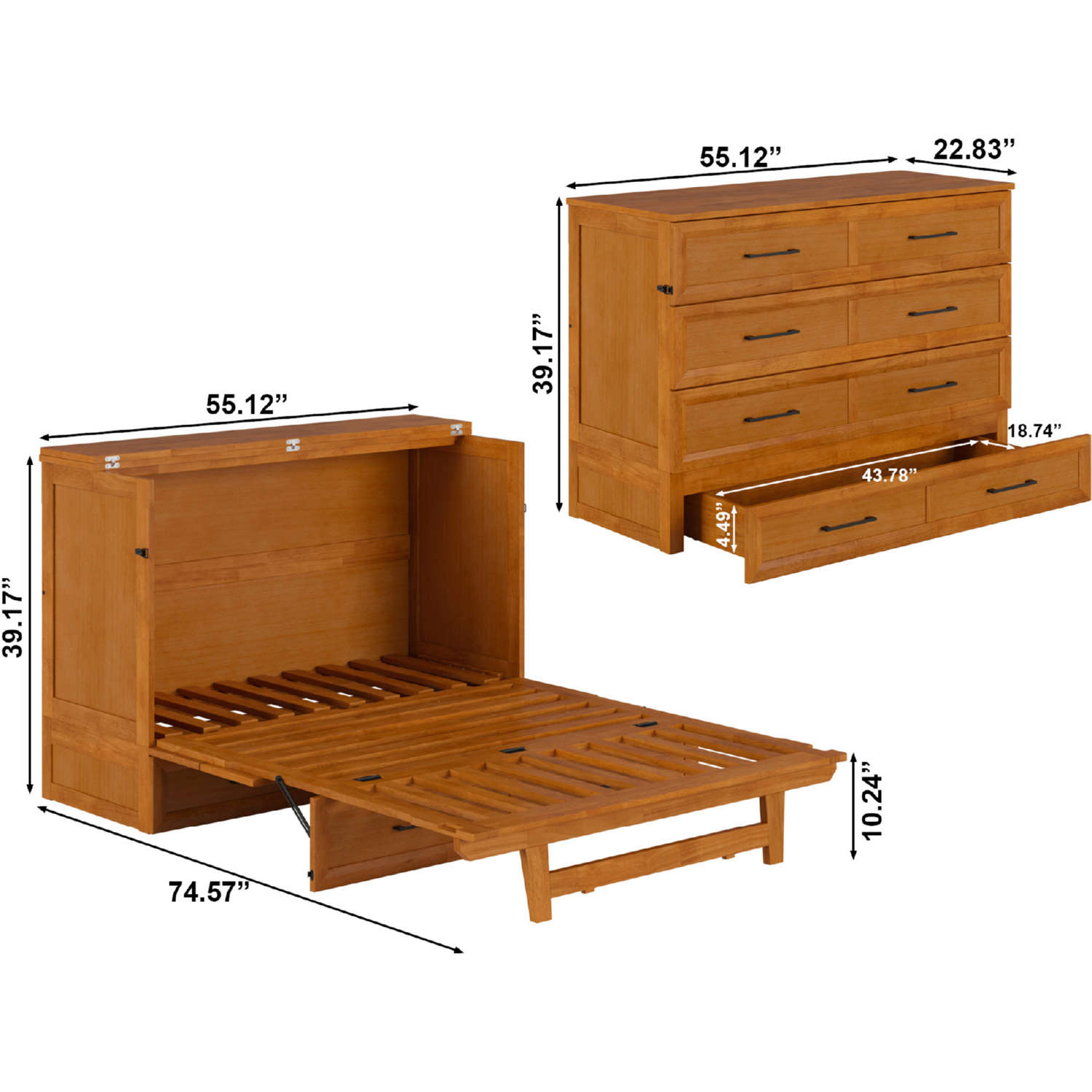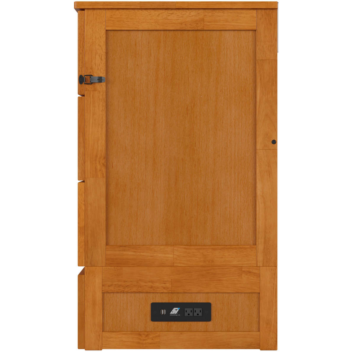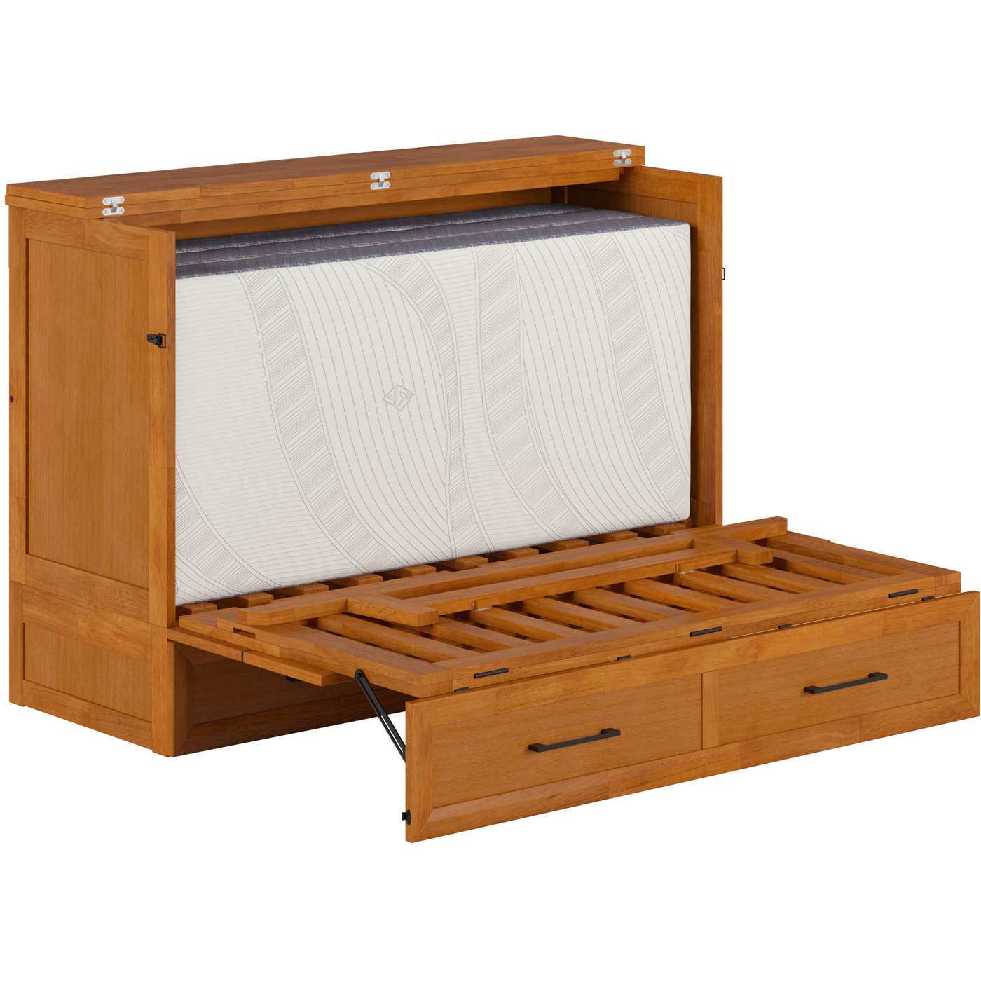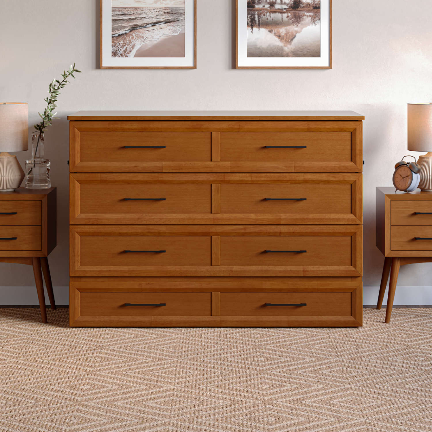 AFI Furnishings Tucson Full Murphy Bed Chest with 6" Mattress, Drawer & Built in Charger in Light Toffee Finish Wood