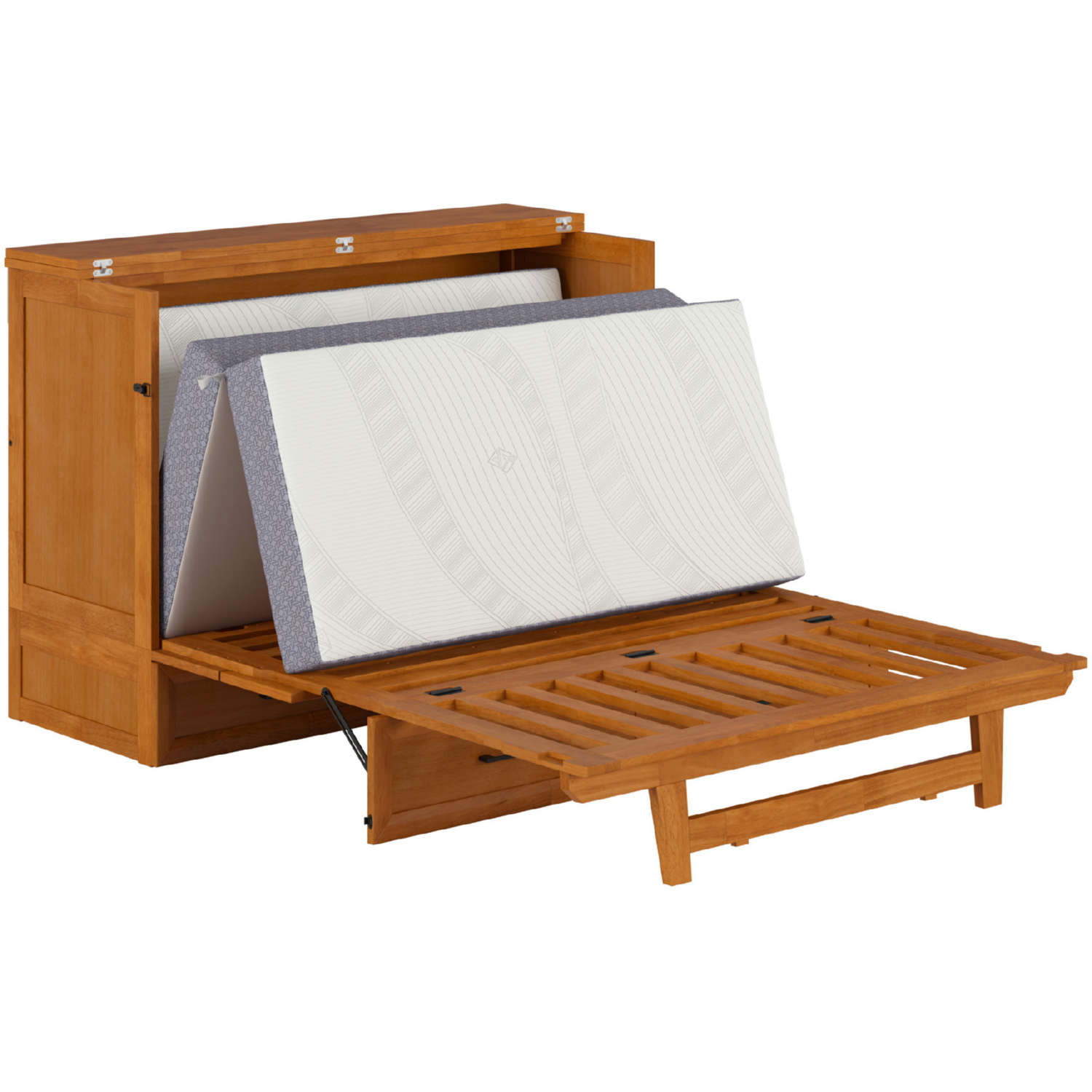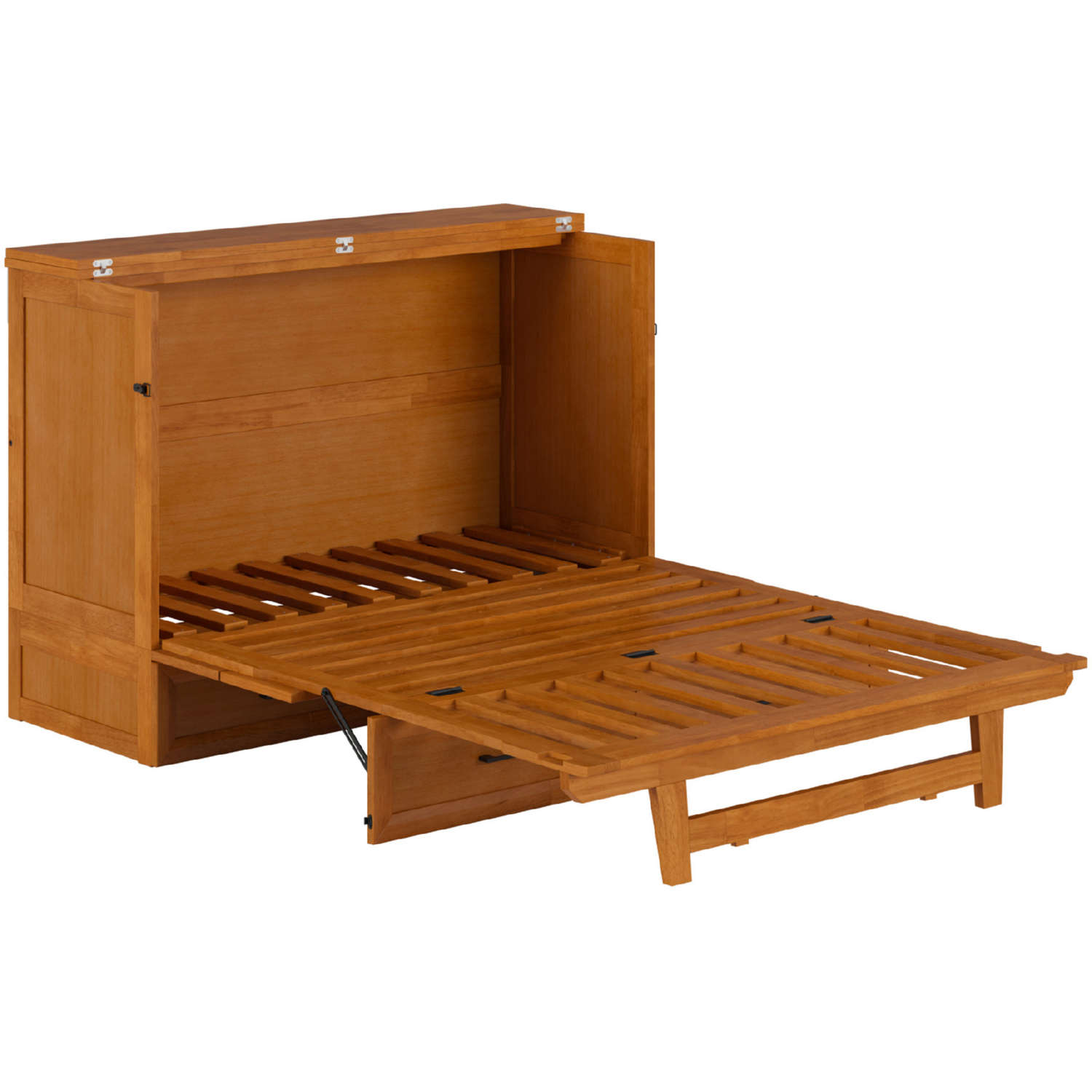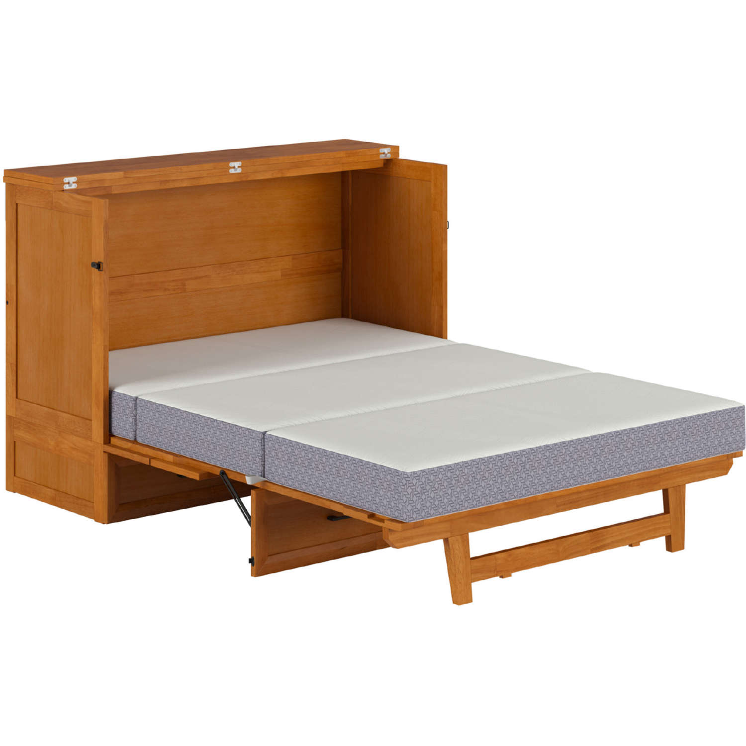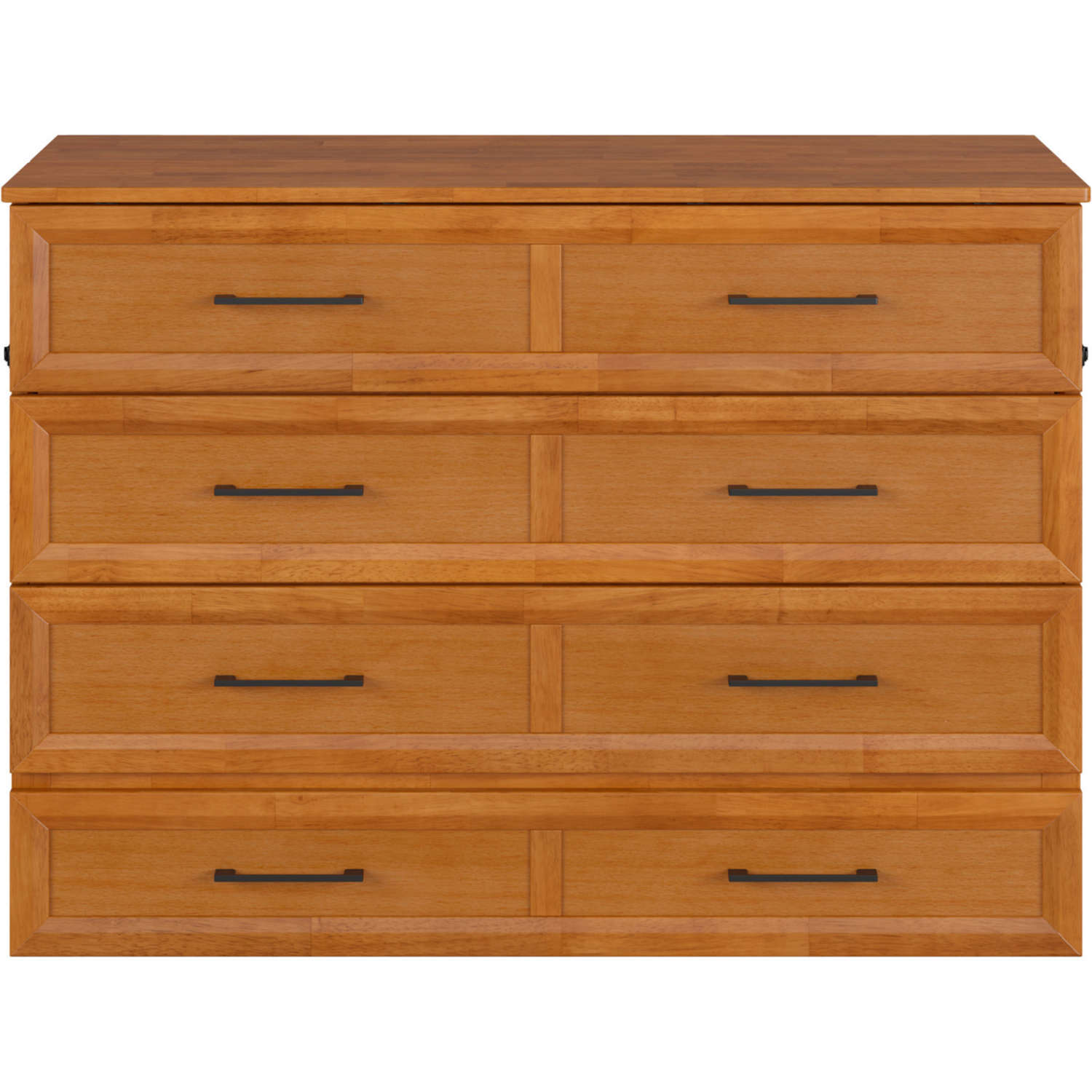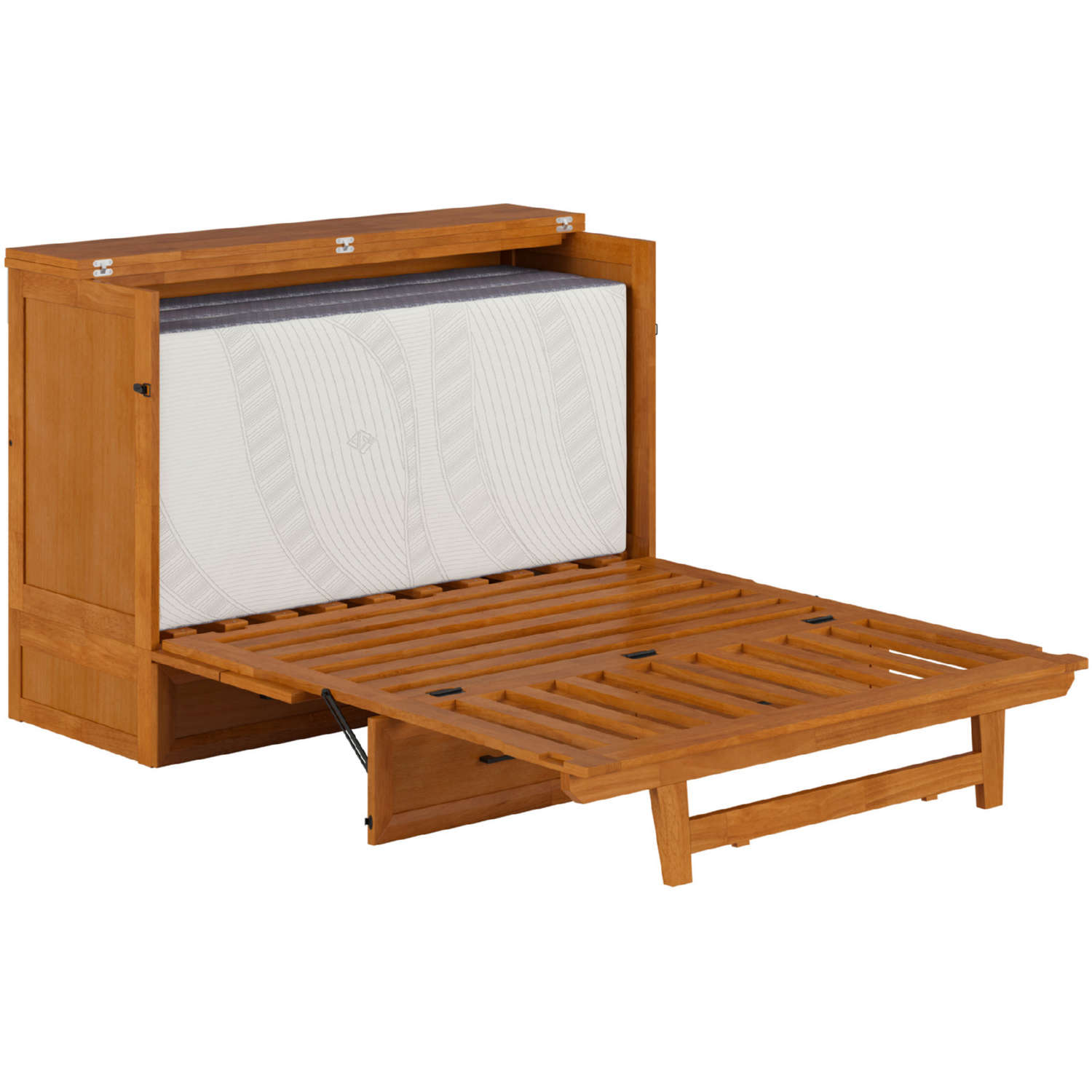 AFI Furnishings Tucson Full Murphy Bed Chest with 6" Mattress, Drawer & Built in Charger in Light Toffee Finish Wood