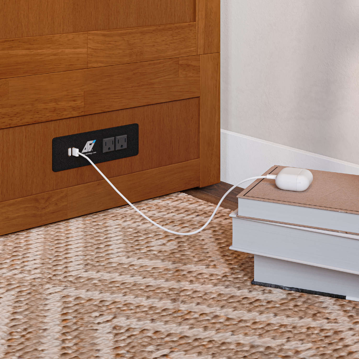 • USB charging station: built-in power source with 9' cord and 2 USB ports