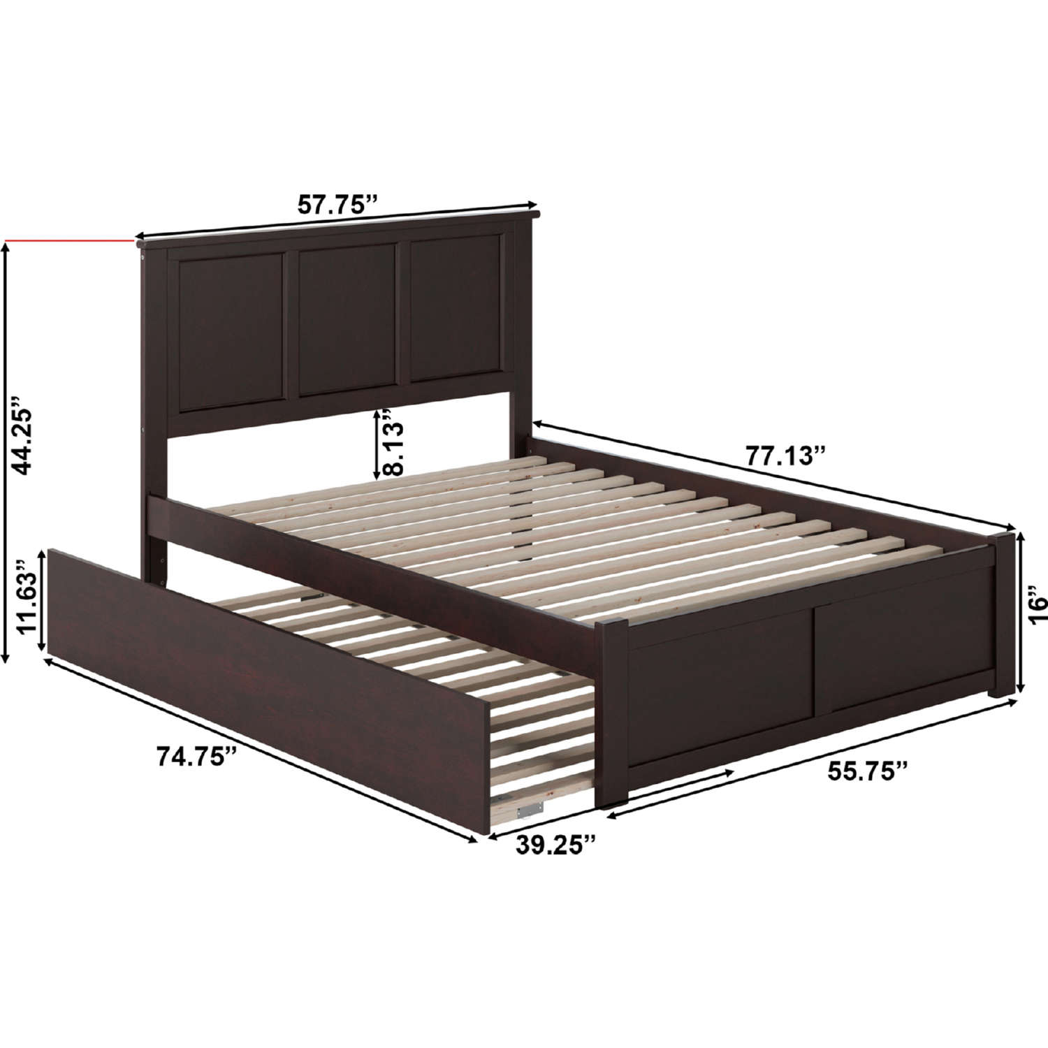 AFI Furnishings AR8632011 Madison Full Bed with Flat Panel Footboard & Urban Trundle Espresso