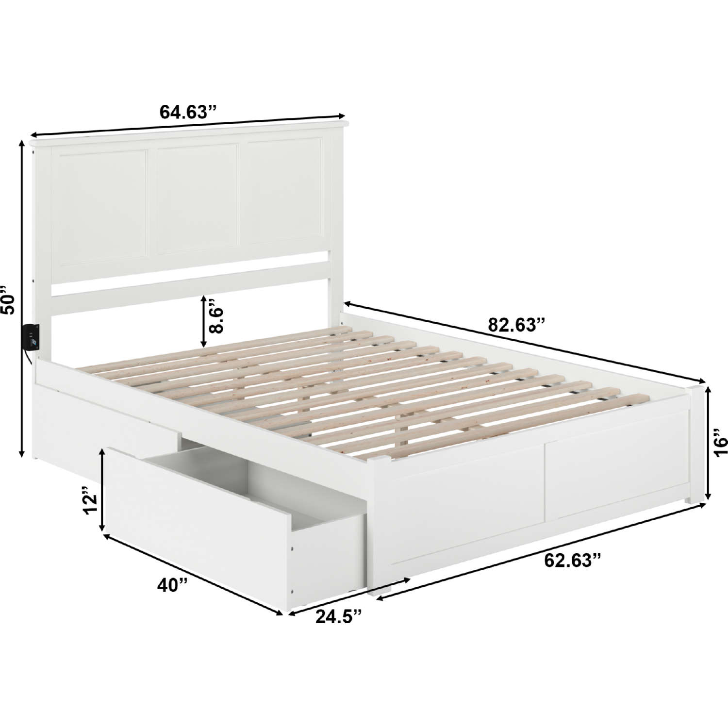 AFI Furnishings AR8642112 Madison Queen Bed with Flat Panel Footboard & 2 Urban Bed Drawers White
