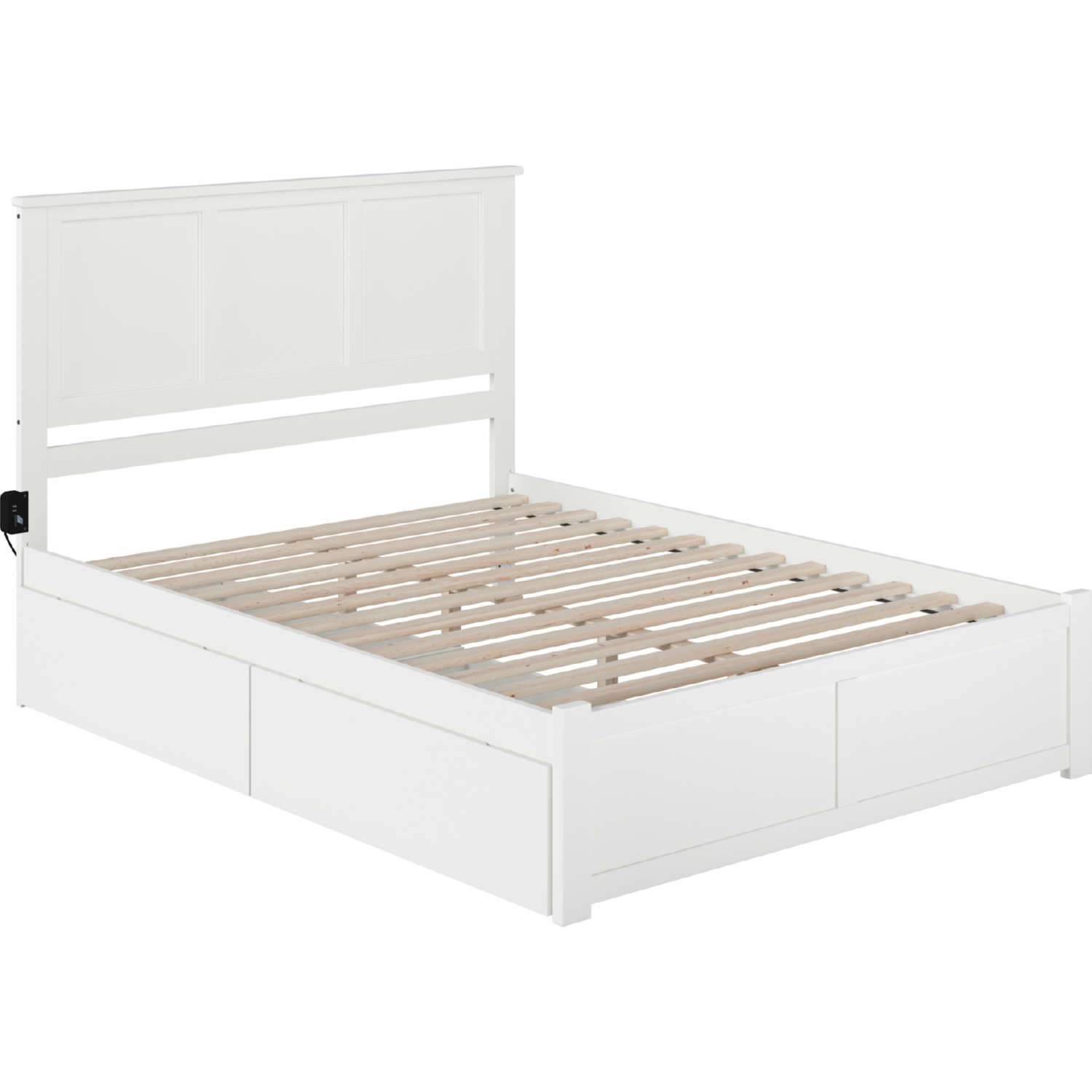AFI Furnishings Madison Queen Bed with Flat Panel Footboard & 2 Urban Bed Drawers in White