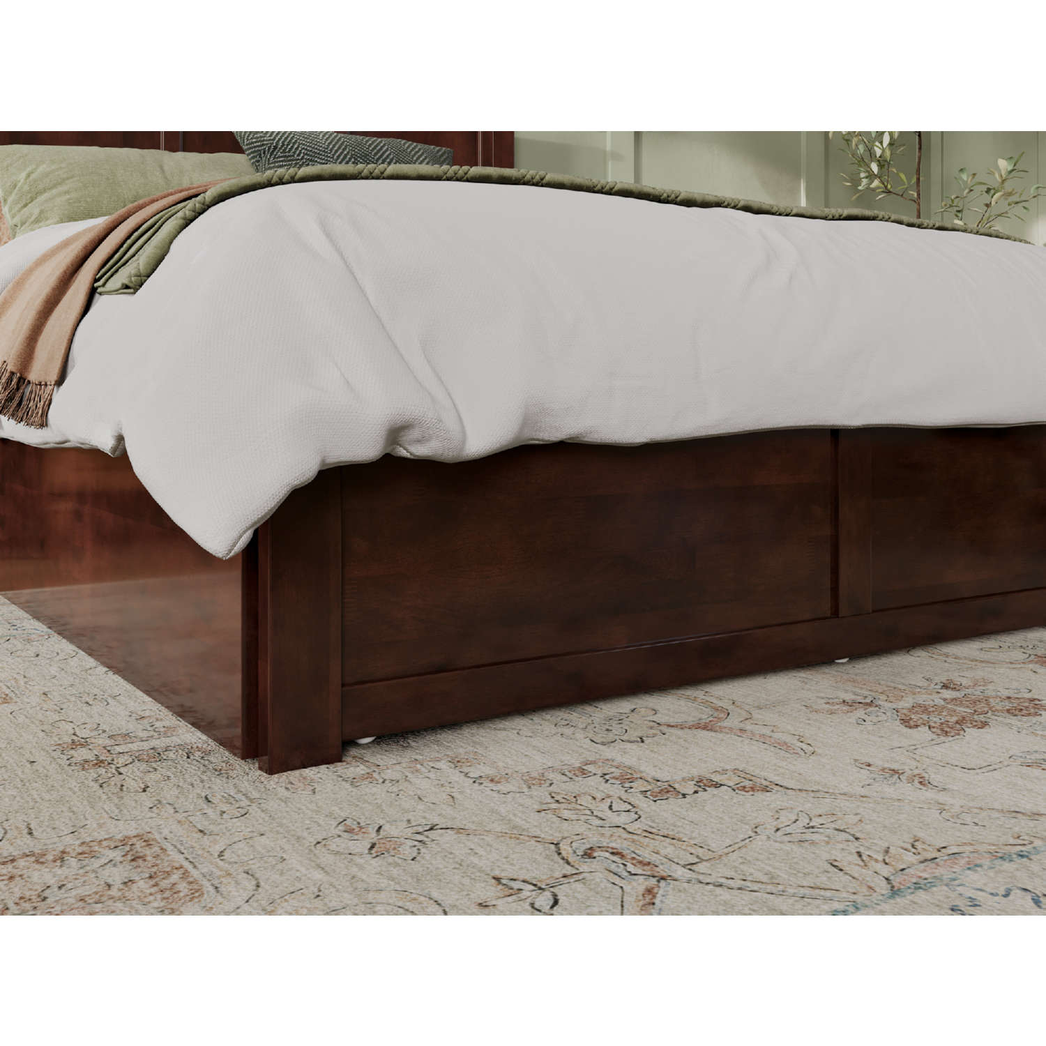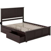 AFI Furnishings Madison Queen Bed with Flat Panel Footboard & 2 Urban Bed Drawers in Antique Walnut