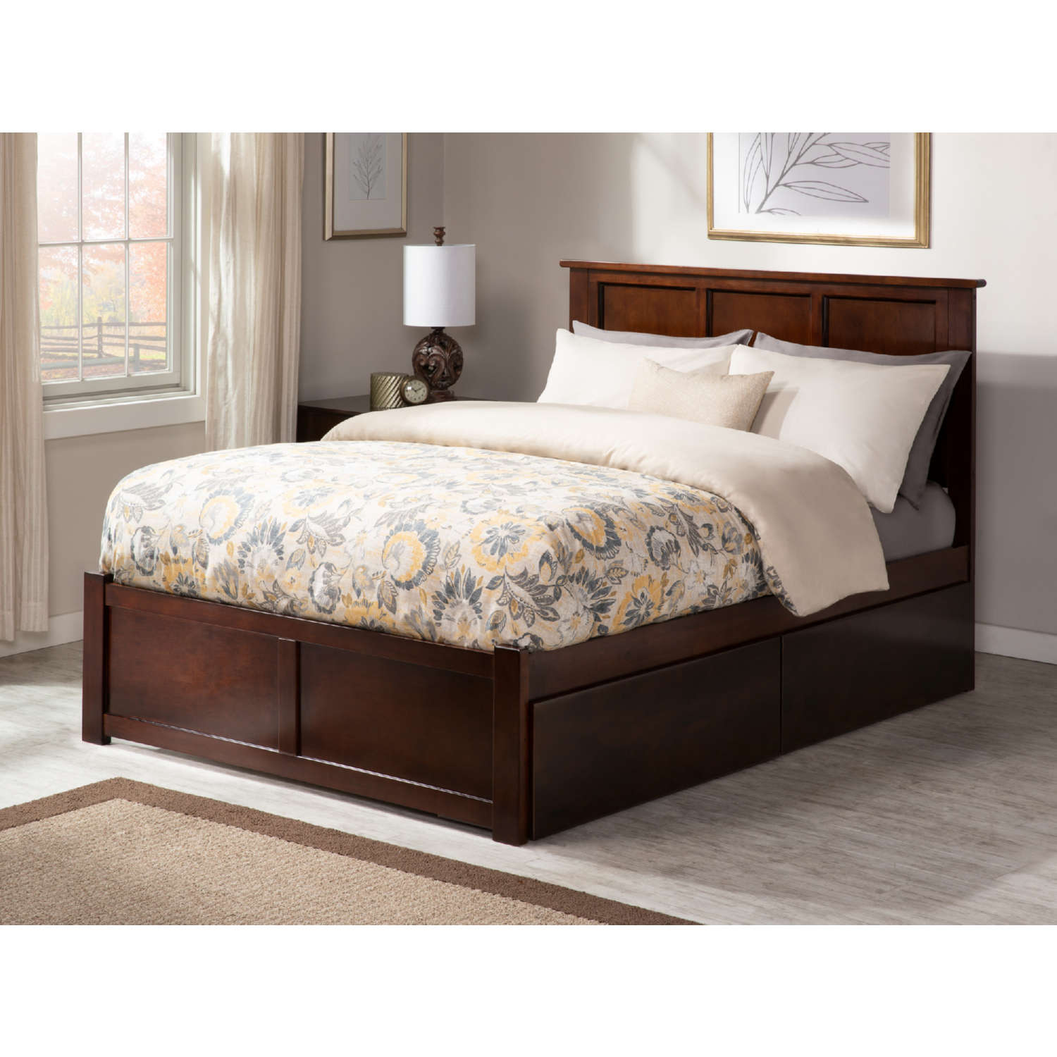 AFI Furnishings AR8652114 Madison King Bed with Flat Panel Footboard & 2 Urban Bed Drawers Antique Walnut