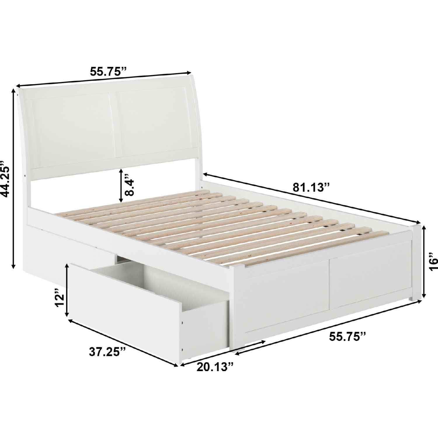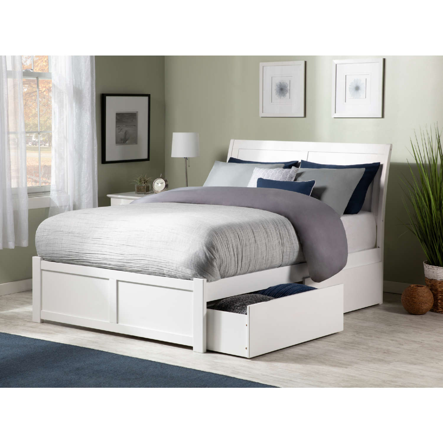 AFI Furnishings AR8932112 Portland Full Bed with Flat Panel Footboard & 2 Under Bed Drawers White