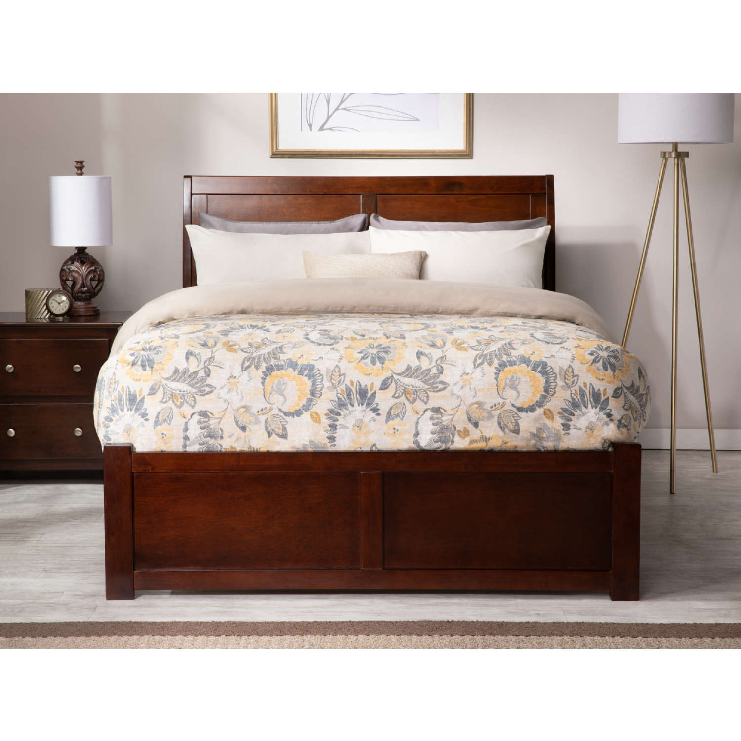 AFI Furnishings AR8932114 Portland Full Bed with Flat Panel Footboard & 2 Under Bed Drawers Antique Walnut